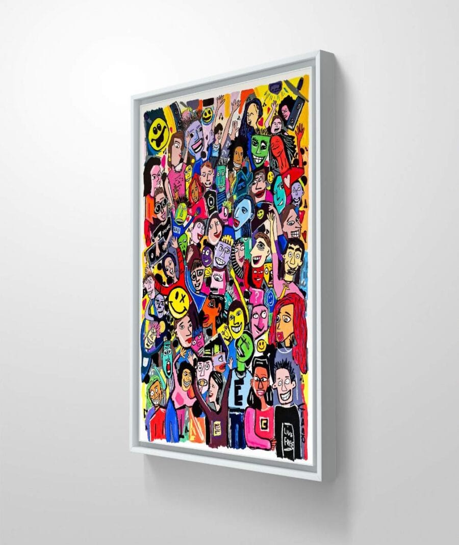 crafted on high-quality 12oz Italian canvas, the use of acrylic and oil sticks adds depth and rawness, enhancing the chaotic yet harmonious energy of the piece. Every stroke and color choice evokes the feeling of being in a crowd, surrounded by movement, music, and fleeting moments of connection.